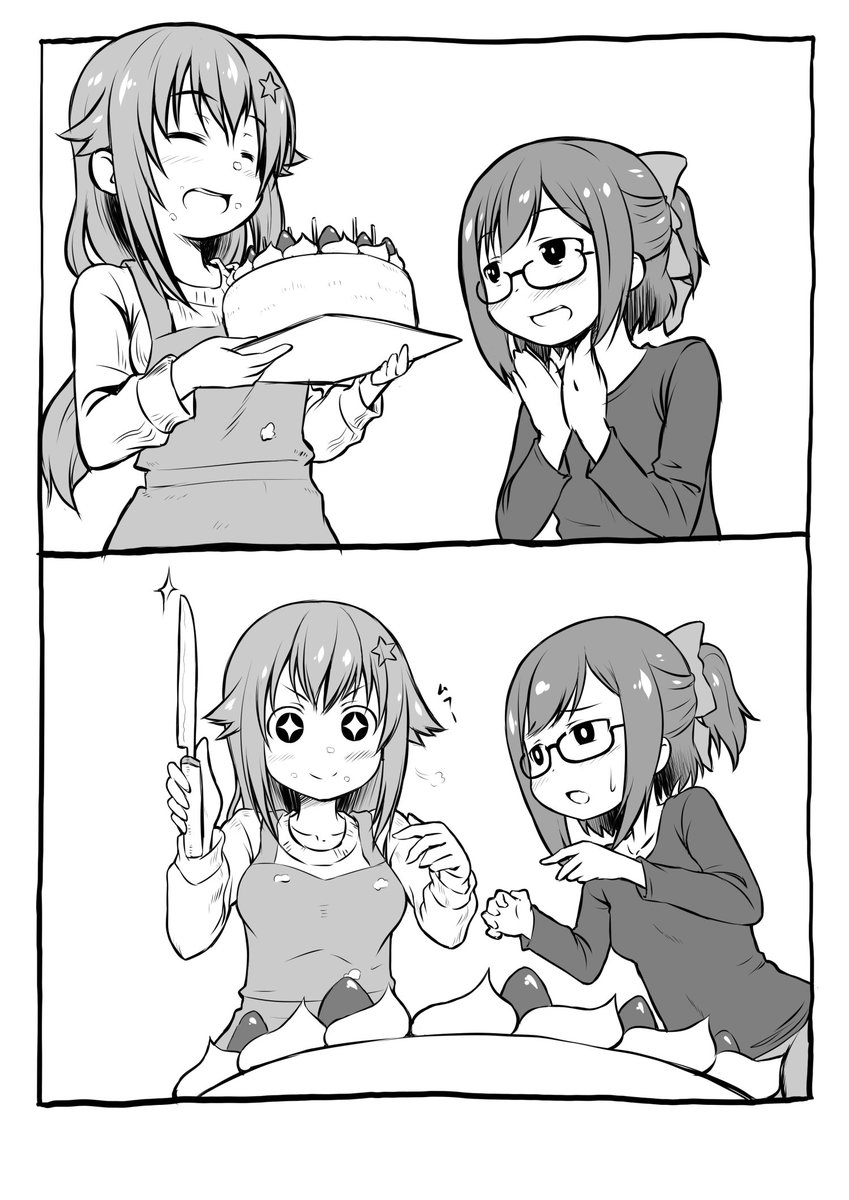取り分ける気満々のそらちゃんとガクブルえーちゃん えーちゃん誕生日おめでとうございますー! ついでに私も誕生日おめでとう。 #ときのそら #soraArt
