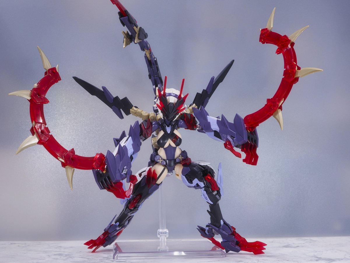 連日立体機動装置で遊んでます。 今度はちゃんと3mm穴開けてランナー挿して接続してます。 ランナーは真っ直ぐだと角度が微妙だったのでライターで炙って曲げてます。 #メガミデバイス #スサノヲ #立体機動装置