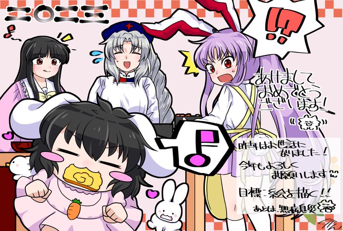 🐰🎍新年のご挨拶🎍🐰 新年あけましておめでといございます🐇 昨年もイラスト制作、新しい出会い、充実したよい一年になりました! 今年も引き続き色々描いたり作ったりします!どうかよろしくお願い致します🙇 #謹賀新年 #東方Project #イラスト