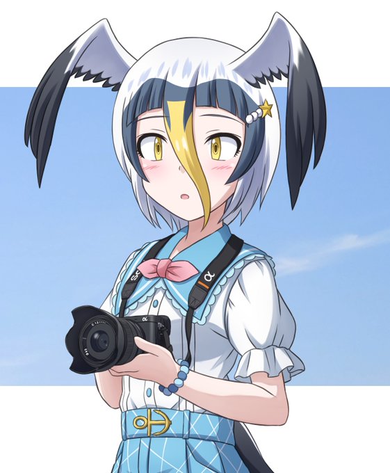 おでかけ服アオツラちゃんを描いた(カメラは自分のカメラをトレス) #けものフレンズ
