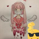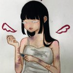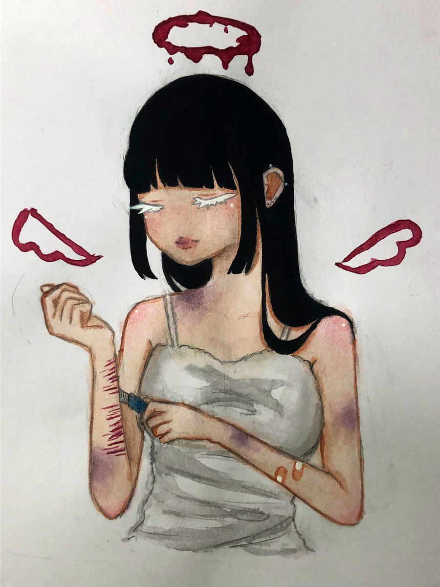 でけたよーん 天使の羽と輪の血っぽい色天才だと思う まつ毛黒が良かったかなー? #イラスト #アナログイラスト #水彩イラスト #夏の創作クラスタフォロー祭り #夏休みはフォロワーさんが増える #創作イラスト #病み