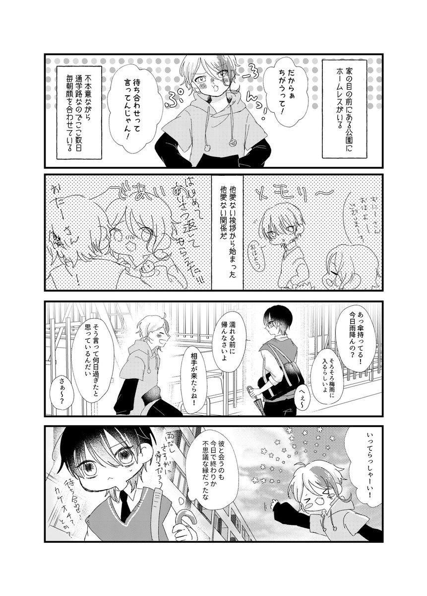 1 2 #漫画が読めるハッシュタグ #創作BL #創作漫画 #BL漫画 梅雨が明けるまでそばにいて(1/5) 待ち続ける男の子と待ち人を亡くした男の子の話 21/11/26 21:40