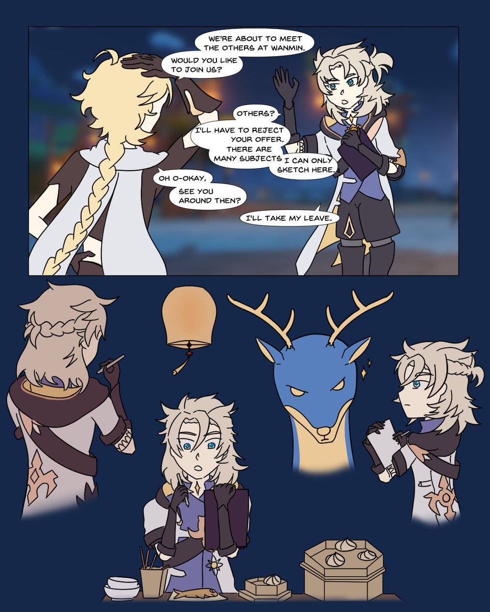 A late lantern rite comic featuring Aether, Albedo, and Lumine! AU Albedo goes to Lantern Rite #GenshinImpact #原神 #原神イラスト