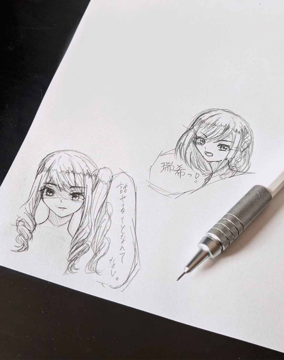 0 1 「ボクのあしあと キミのゆくさき」のイベストを見てる間に書いた絵 #prsk_FA 22/06/30 11:17