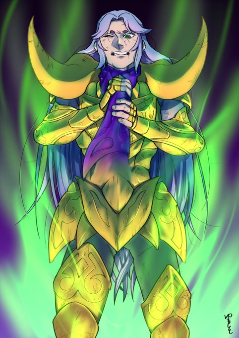 #2020年自分が選ぶ今年の4枚 ①☆矢にハマって初めて描いた♈(4月) ②上手くなりたくてポーズを意識して描いた♏(7月) ③フォロワさんのファングッズに初参加した時の♏(11月) ④今年一番いいねもらった♈師弟(12月)