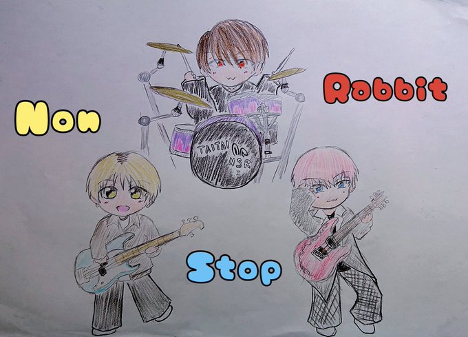 ようやくアー写イラスト描けましたぁ!! もう何番煎じだよ!とか言われてしまいそうですが頑張りました! 達也さんの服の柄は手描きでは無理でした…(泣) _:(´ཀ`」 ∠):_ #ノンラビ描いてみた