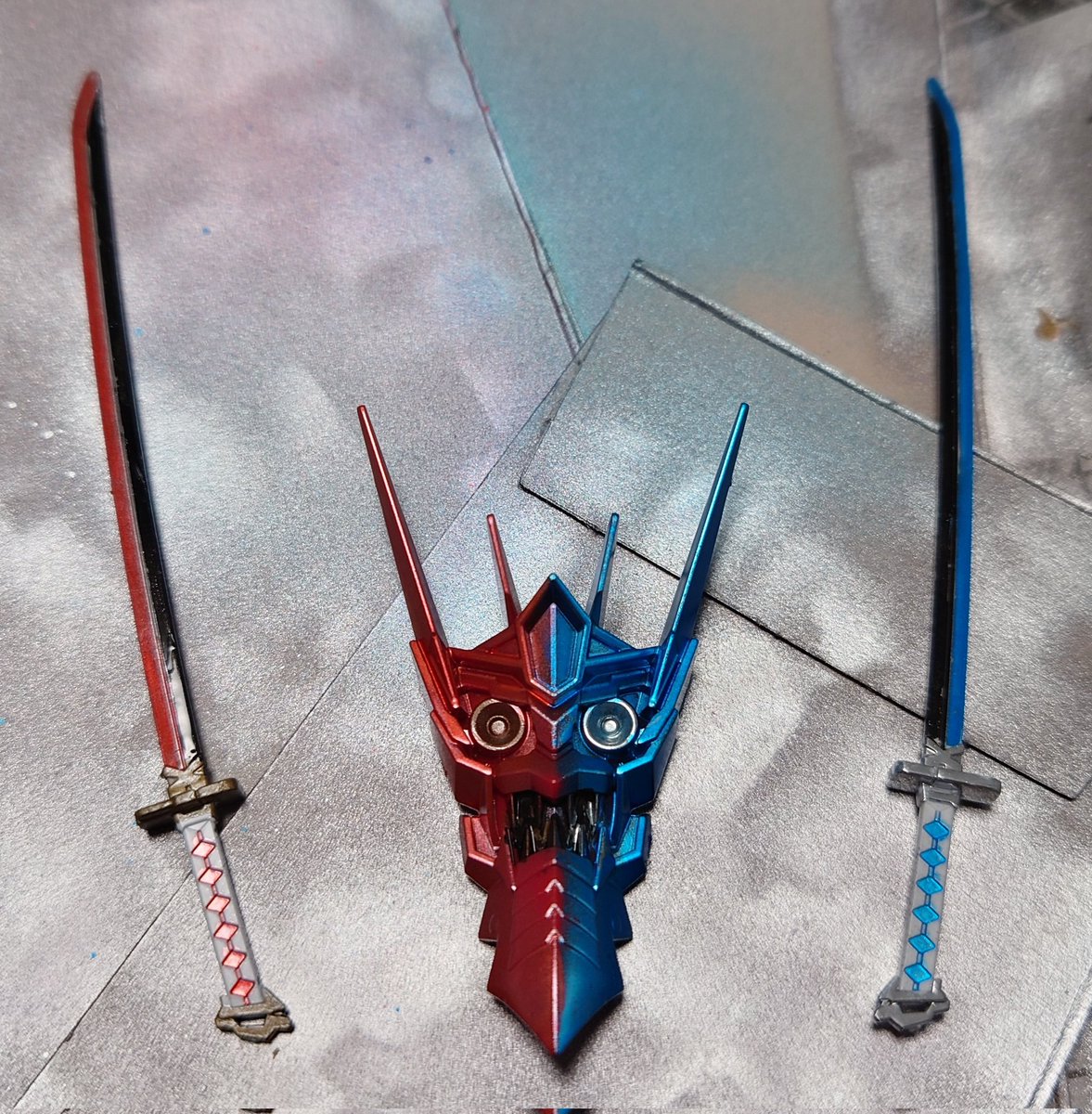 今年2体目を制作中✊ 戦国アストレイ頑駄無を紅蒼(レッドブルー)に塗装中🎨 武器だけ終わりw #ガンプラ好きと繋がりたい #ガンプラの画像を貼るとRTされると聞いて #ガンプラはどんな自由な発想で作ってもいいんだ
