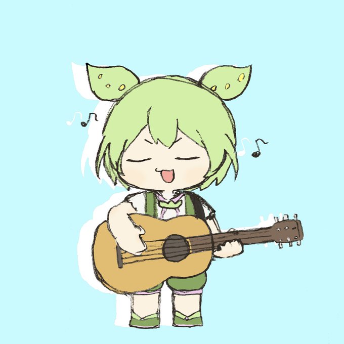 70 321 めっちゃ前に募集した落書きのお題① 「弾き語りのマネをしてみるずんだもん」 右手と左手で描きました 23/06/07 20:22