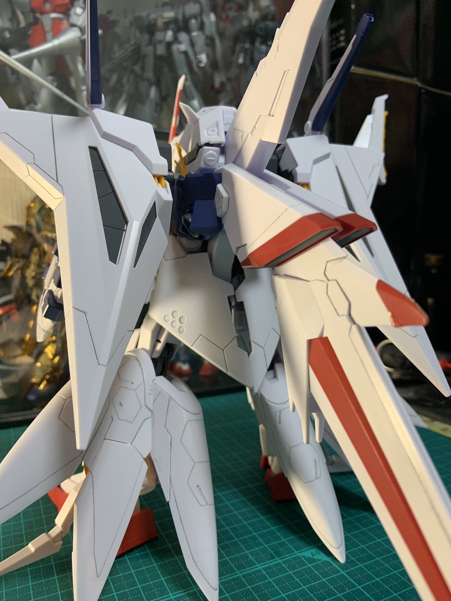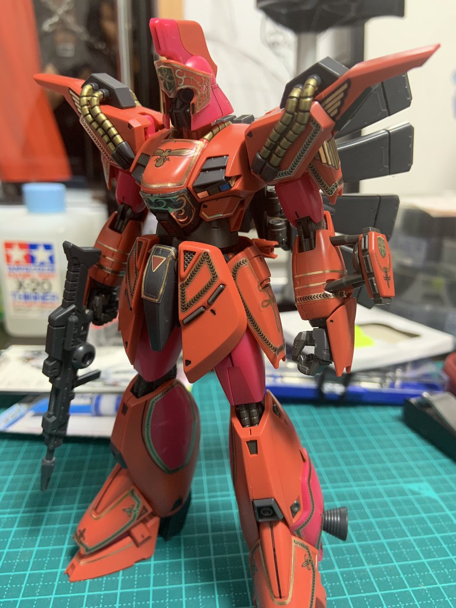 #ガンプラ #ペーネロペー ちまちまスミ入れしつつ組んで、やっとかんせー \\ ٩( 'ω' )و // どこのバカだよ! こんな複雑なMSデザインしたヤツ! サイコーにカッコイイ!