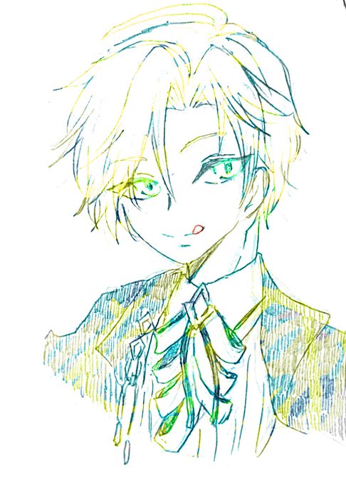出来たけど…前髪短いね😊 レヴィだよ見えなくてもレヴィです!!!!!!! #obeyme #obeymefanart