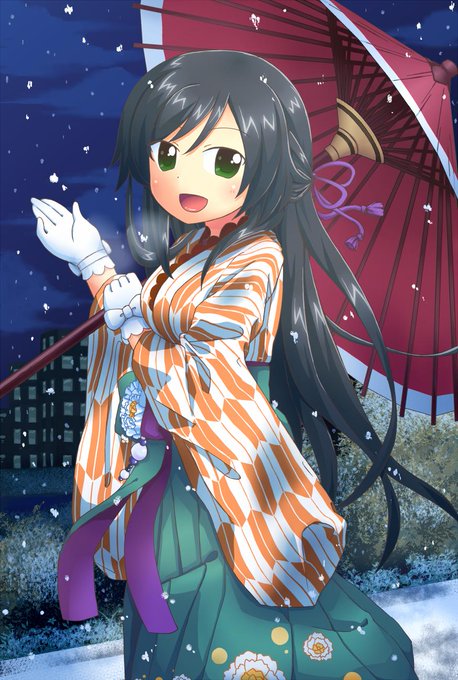『キャプテン!雪ですよ雪!綺麗ですね!』 そろそろ雪も溶けてくる季節ですが、雪景色を楽しむハイカラな若菜ちゃんを描いてみました! またハイカラ衣装来て欲しいな~ #オルガル2 #オルガルイラスト部