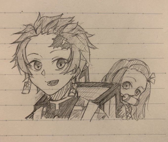 記憶だけを頼りに落書き程度に描いてみました〜…禰󠄀豆子の箱がちょっと違ったね だが見て欲しいのであげます✨ #鬼滅の刃 #竈門炭治郎 #竈門禰󠄀豆子 #絵描きさんとつながりたい #イラスト好きな人とつながりたい
