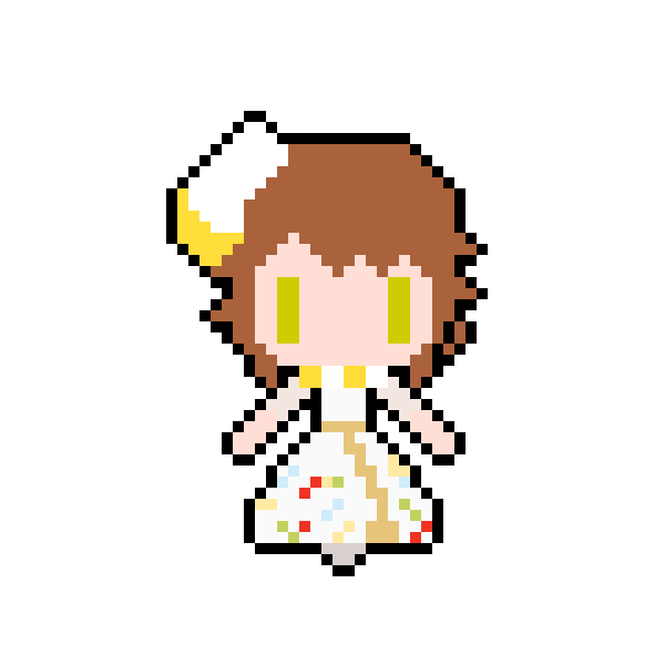 0 4 ドットを細かくするとこんな感じ。 ポニテがストレートなので、描きなおさないといけないやつ。 (この衣装だとウェーブかけてるはず・・・。) #ココ・シャベル 21/08/11 21:20