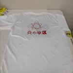 信仰の証としてTシャツ作ってみた。 あまり手作りグッズばかりだと三柱様が信仰心(作中用語でプラーナと言う)が足らず顕現出来なくなるので、ハロウィンにはお布施することにする。 #プリズムステラ