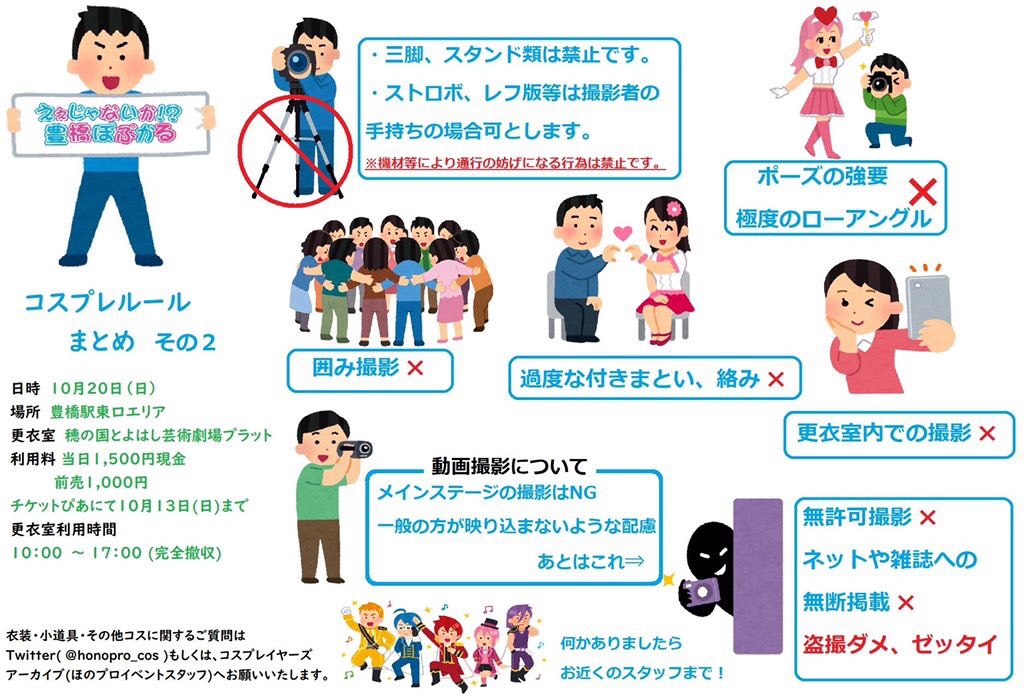 25 33 いよいよ明日開催! 最後にコスプレ、撮影に関するルールを今一度ご確認下さい! toyohashi-popcul.com/cos/ #豊橋ぽぷかる #コスプレ 19/10/19 13:16