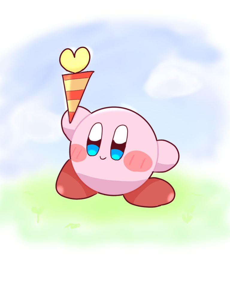 #梅雨のカービィ #カービィイラスト カービィさん傘の使い方間違ってますよ
