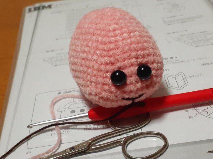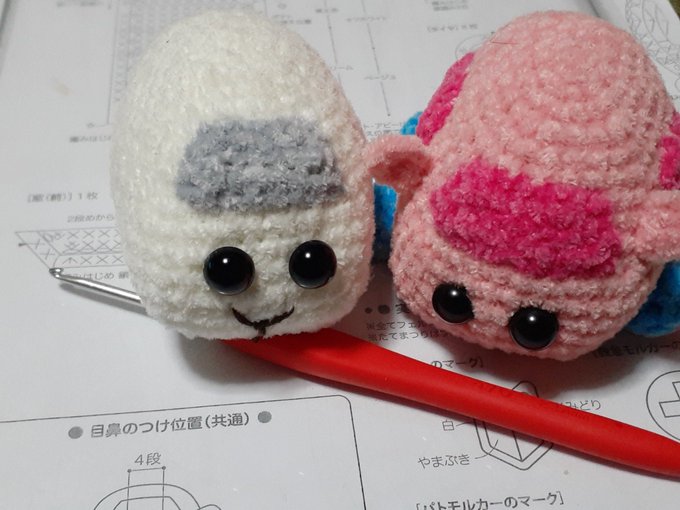 あみぐるみシロモちゃん進捗。 窓を縫いつけてから気付いた。ポポムちゃんの窓に比べ、ちょい小さめ? 同じ編み図を同じ糸で編んだのに、なんでこんなにサイズが違うの? シロモにはちんまりかわいくなるっきゃない呪いでもかかってるの?☺️ #モルカーファンアート #あみぐるみが編みたくなる糸