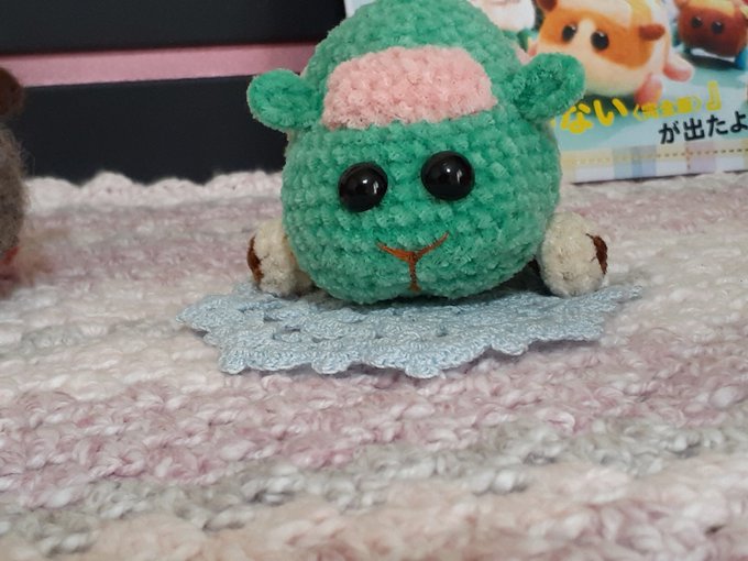 あみぐるみポポムちゃん進捗。 モール糸は編みづらいけど、モコっとした質感はプイプイさんチックで素敵☺️ 今夜にはボディを完成させてあげられる、、、かな。まっててね、カカオちゃんp(^-^)q #モルカーファンアート