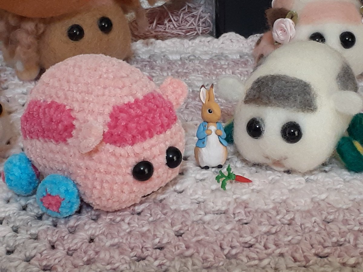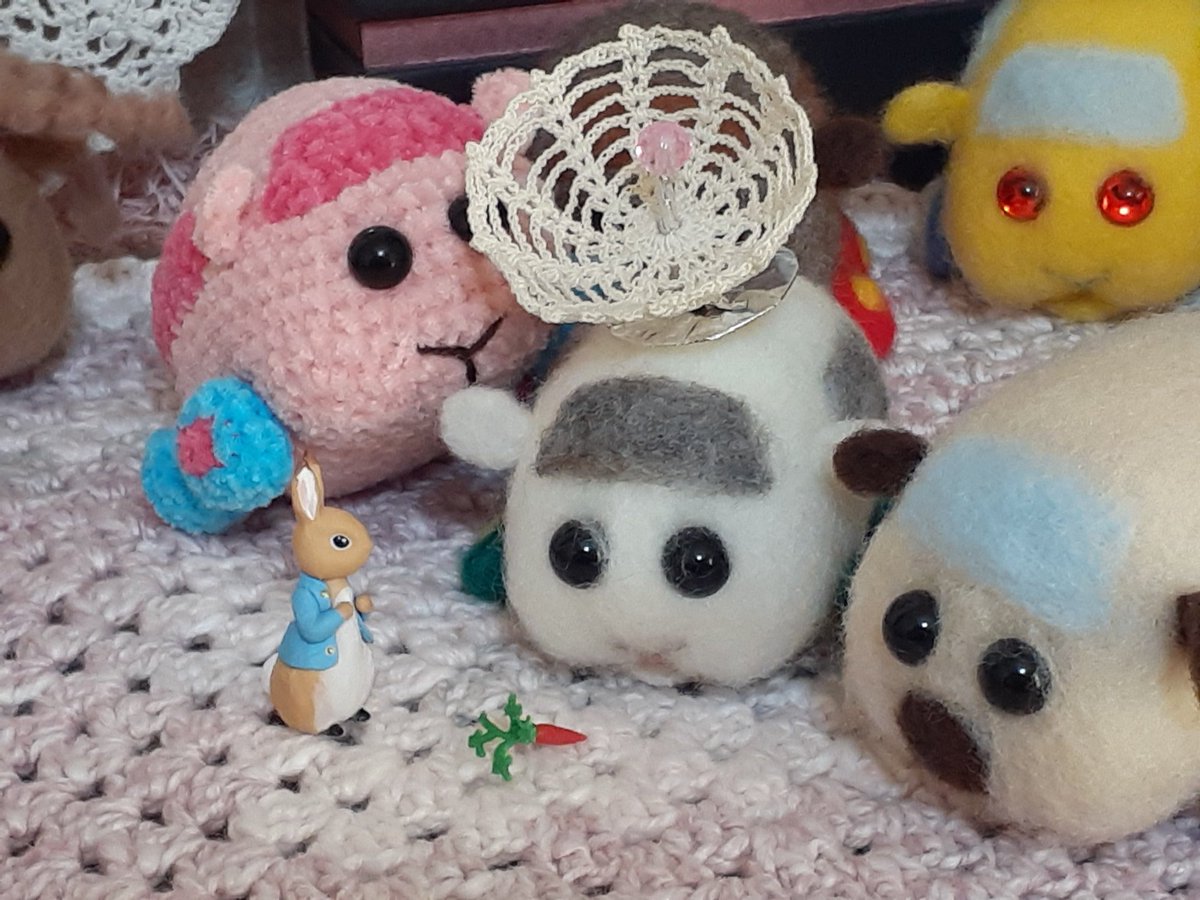あら、未完成のあみぐるみポテトがモルタウンに紛れ込んじゃった💦 プイさんたちが慌てて毛糸ポテトを隠す隠す。 🍫「ポテト、こっち向いちゃダメぷい!」 🍟「?」 🍫「(毛糸ちゃんは明日のポテトへの誕プレぷい!兄弟が生まれること、ポテトにはまだナイショだぷい!)」 #モルカーファンアート