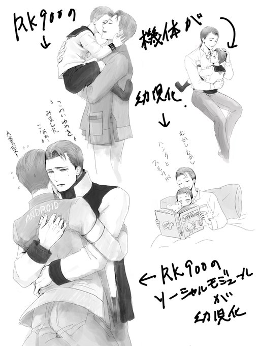 21 86 タグ絵描きました!(コナーが幼児化したRK900を抱っこする絵) #RK1700 20/05/06 13:05