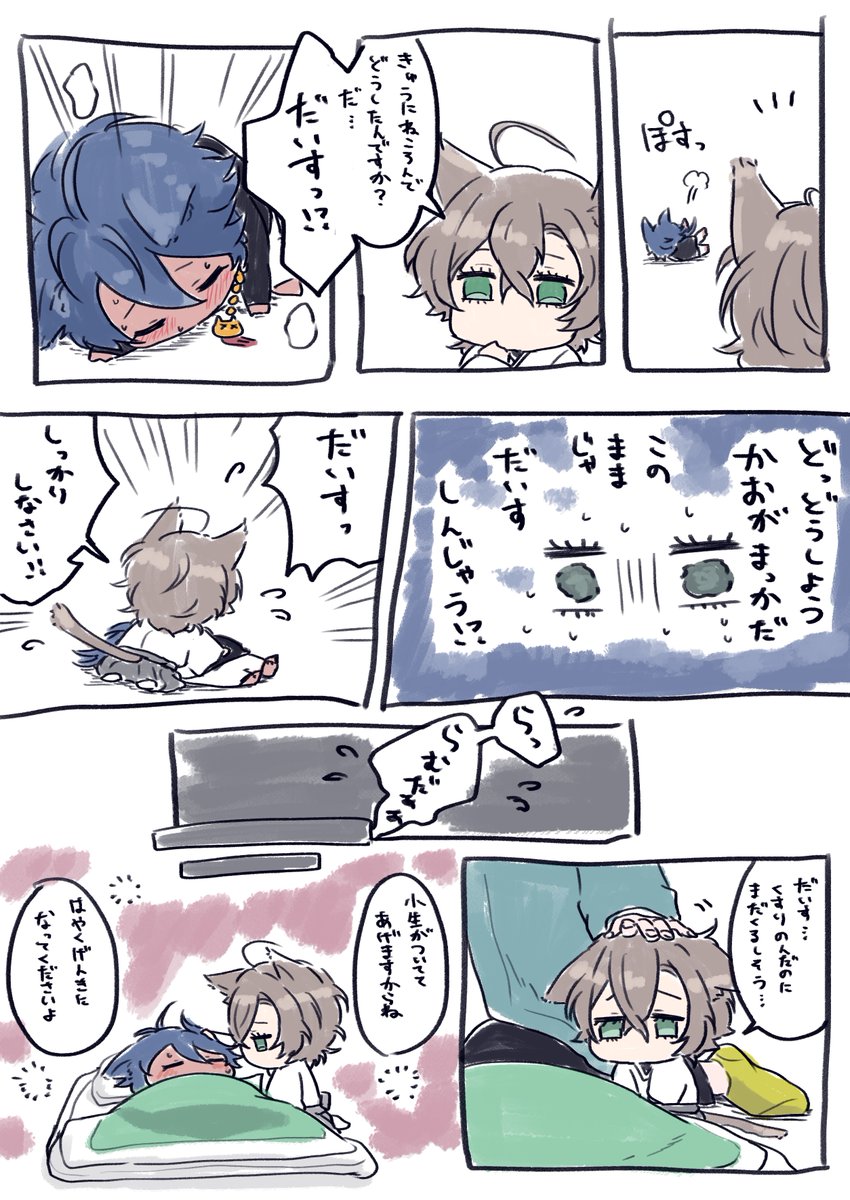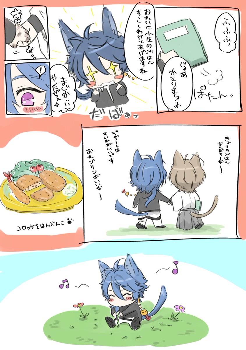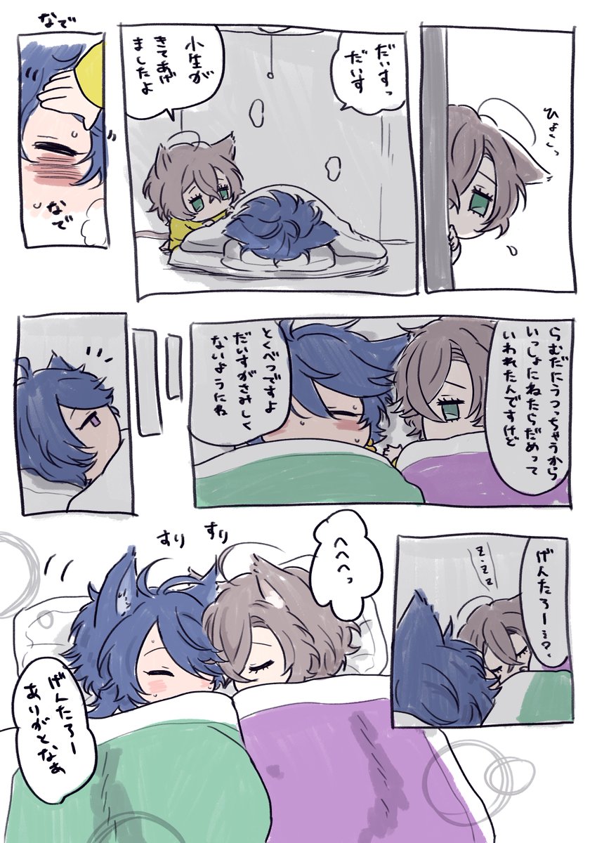 58 261 せっかく猫の日なので鍵垢でゆるっと描いてたやつ載せます🐈 子ねこの🎲と📚(人間のらむちゃんと暮らしてる設定) ただただ二人が仲良しなだけです🐱🐱 2枚めまでと3枚めからは繋がってません。 23/02/22 18:22