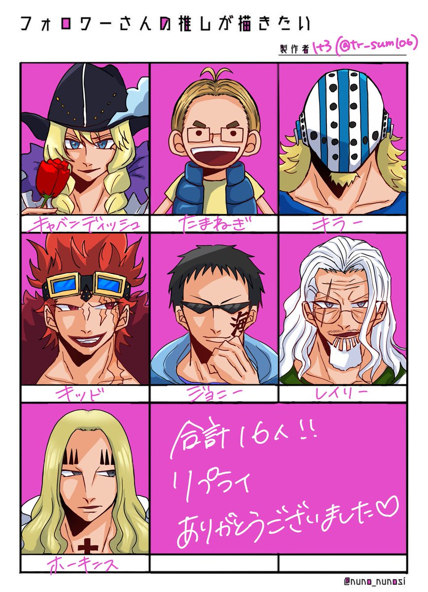 14 56 💛と🌷以外は初描きだったので苦戦しましたが楽しかったです☺️(🚬吸ってる子の煙描き忘れましたすみません…) #フォロワーさんの推しが描きたい 22/10/22 22:23