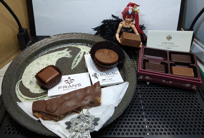 #メガミデバイス や)玉藻様、今日はお願いがあります。 もうすぐバレンタインなので、チョコの試食を手伝っていただけませんか? 玉)それはいいけど、貴女こんなに食べると大変な事になるわよ? や)ぐっ💦それは言わないで下さい…