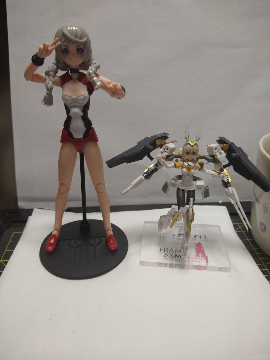 玉)貴女、これ大きすぎない?私のことそんな風に見えてたんだー、ふーん💢 や)わわわっっ、すみませんデザイン重視で買ってきたので… 玉)(そんなお買い物の仕方してて大丈夫なのかしら…) #いろしか #メガミデバイス