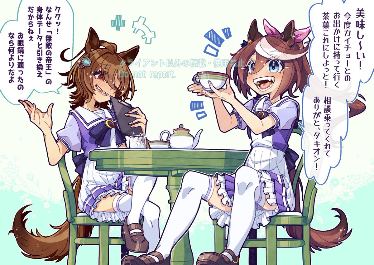 635 3563 skebでお茶会をするテイオーとオンさんを描かせていただきました!リクエストありがとうございました🙏 23/08/08 00:20