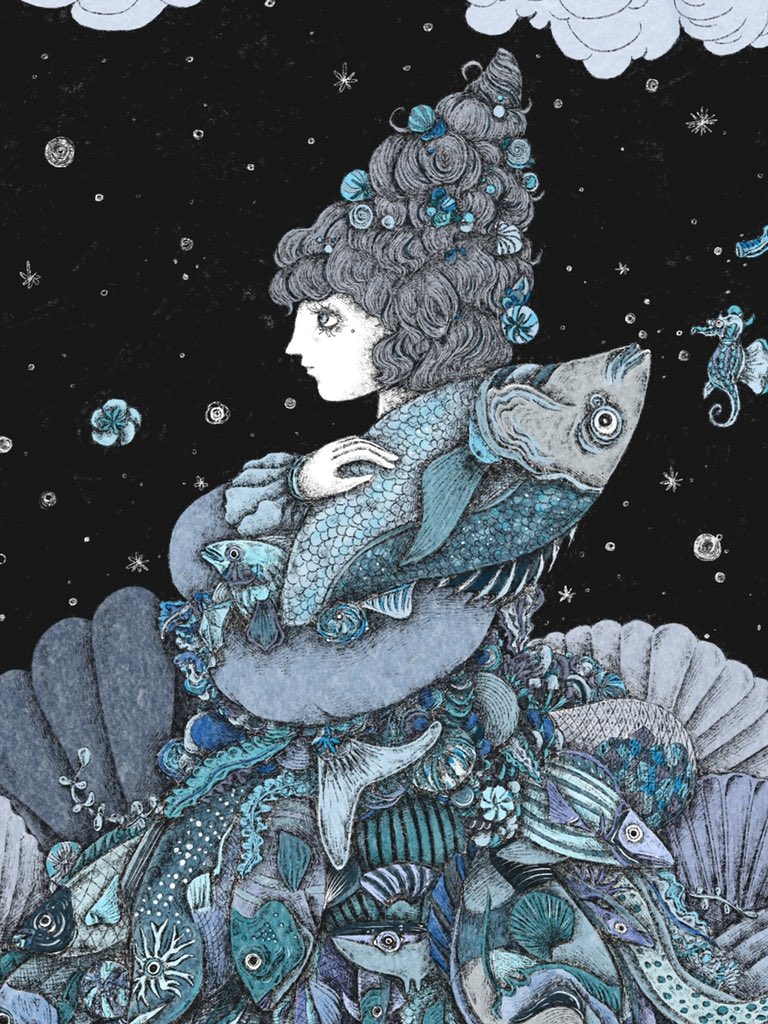 Fish girl. Blue series💙🐚 #絵 #落書き #イラスト #絵描きさんと繋がりたい #イラスト好きさんと繋がりたい #絵師さんと繋がりたい #illustration #插畫