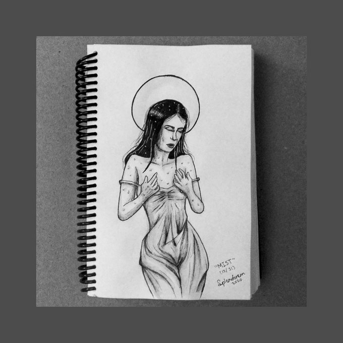 "Mist" Day 13 of #obscuretober2020 Uno de mis favs hasta ahora, me encanta como es el opuesto de mi dibujo del día 2 <3 #artober #Artober2020 #inktober #inktober2020 #drawingchallenge #inkdrawing #myart #wet #saint