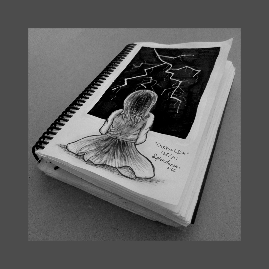 "Chrysalism" Day 28 of #obscuretober2020 Las lluvias con relámpagos de Hmo son bonitas siempre y cuando no vivas en Hmo. #artober #artober2020 #Inktober #inktober2020 #drawtober2020 #drawtober #inkdrawing #lightning #storm