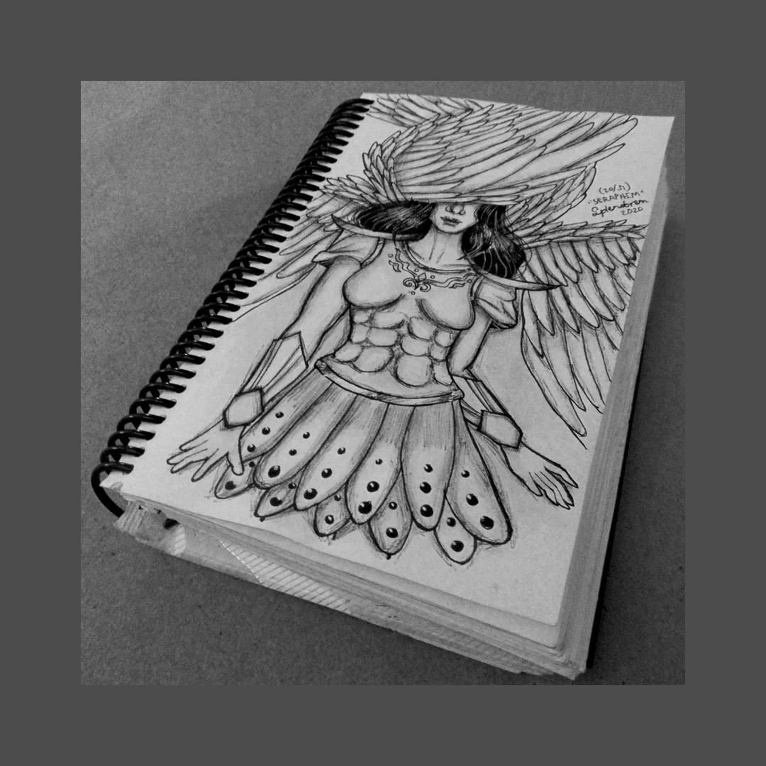 "Seraphim" Day 20 of #obscuretober2020 Era dibujar esto o el serafín de la película fea de Televisa #artober #Artober2020 #inktober2020 #inktober #drawtober #inkdrawing #drawingchallenge #blackandwhite #angel #myart #MyArtwork