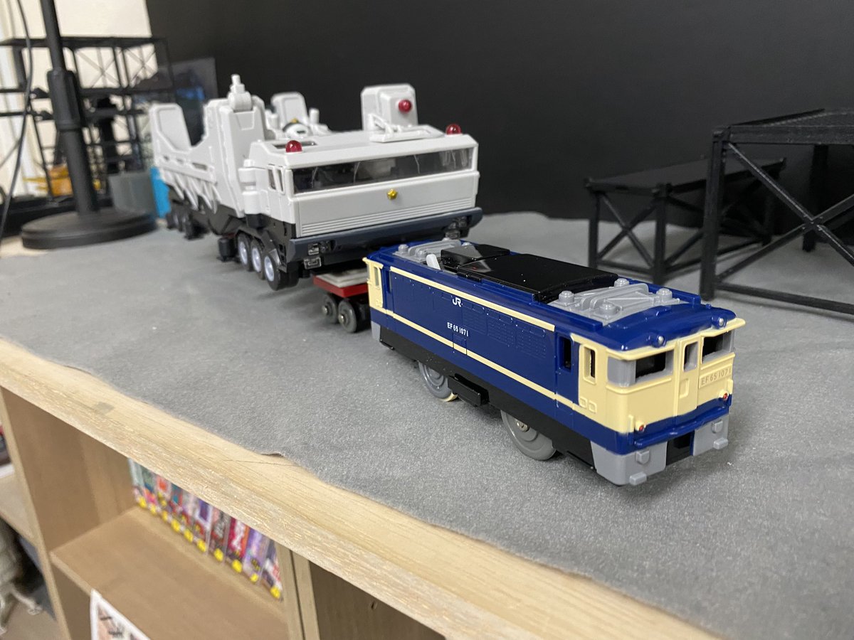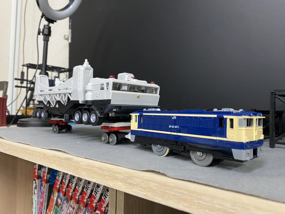 2 6 え〜レイバーキャリア鉄道輸送計画ですが土台完成と仮組まで来ました。あとは固定を考えるのとなんか走らせれればいいなっと #パトレイバー模型部 23/02/27 22:03