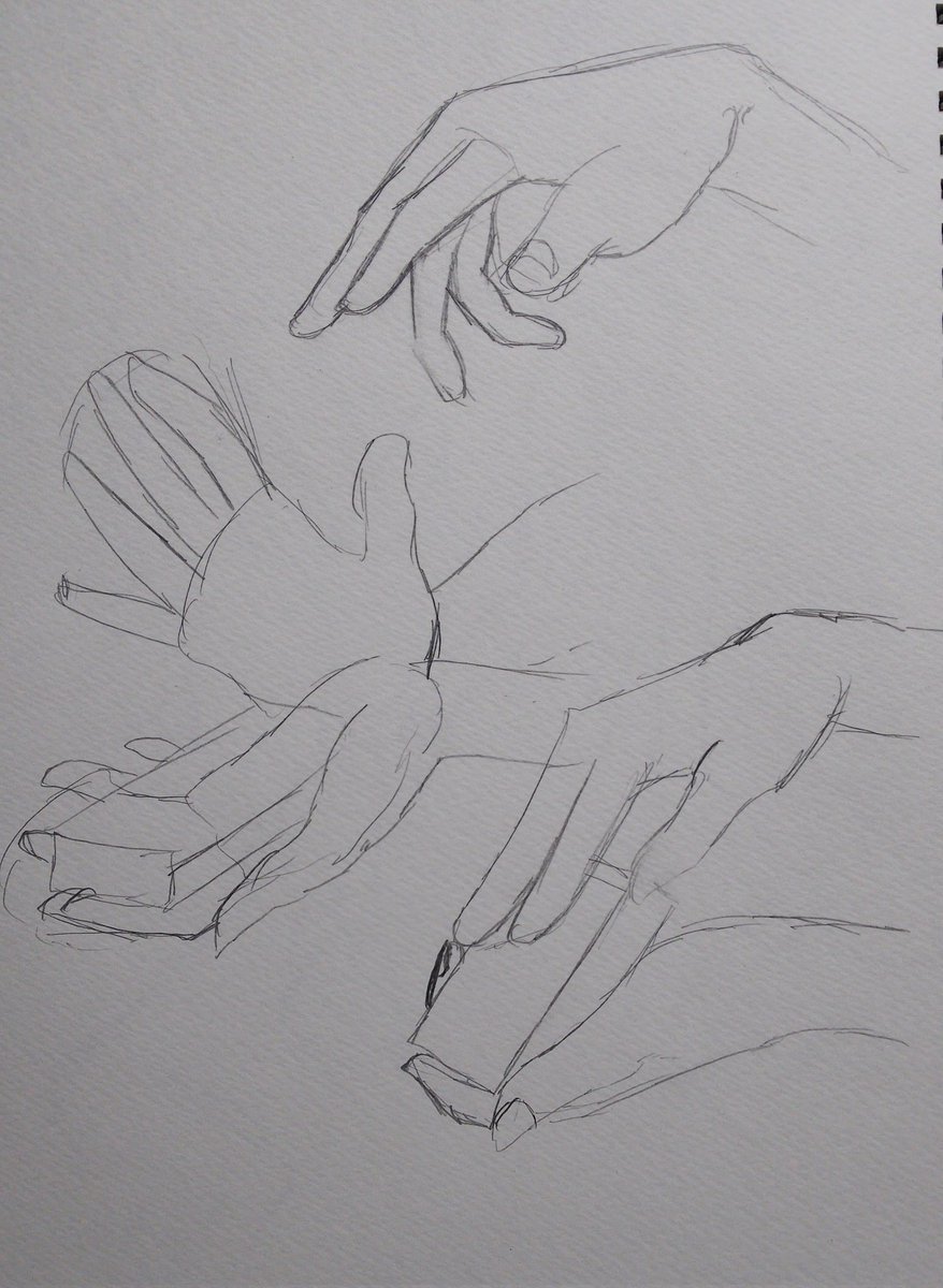 講座でこんな手を描きました! 手の大まかな形を覚えるのに役立ちそうな内容でした まだまだ練習が必要だなと思います😓