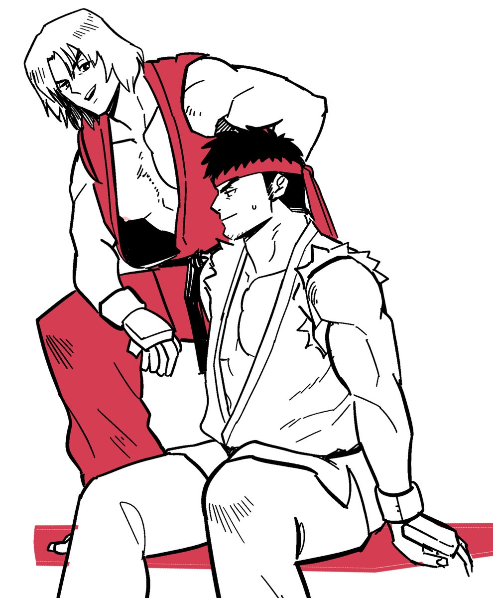 エアスケブのお題「辛いケン(スト6)をなぐさめているリュウ(スト6)」ありがとうごいざました!💕