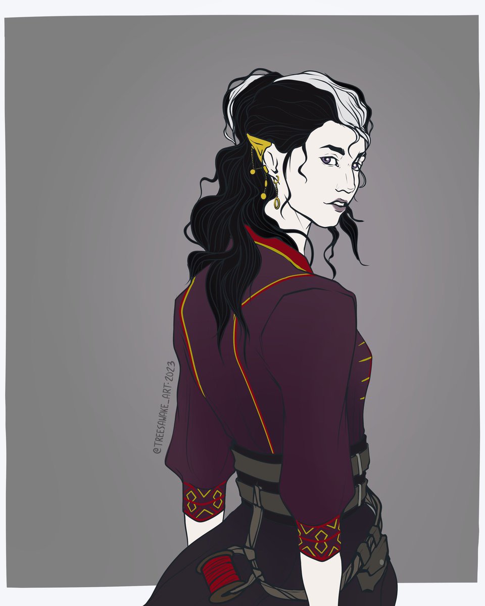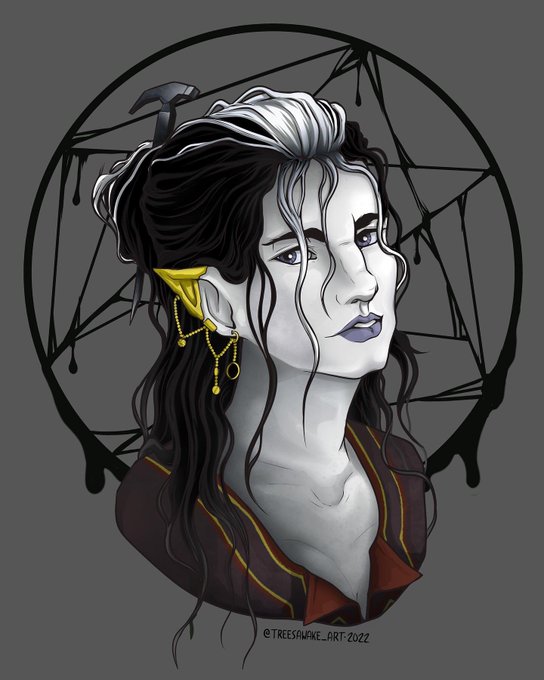 Finished the Ashton bust. Took me forever to design how I was gonna render their hair. @CriticalRole @executivegoth #workinprogress #digitalillustration #criticalrolefanart #criticalrolecampaign3 #ashton #ashtongreymoore #fanart #dungeonsanddragons #dnd #wacom #CLIPSTUDIOPAINT
