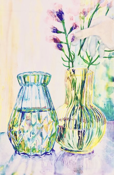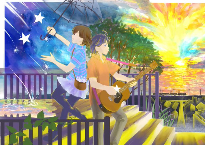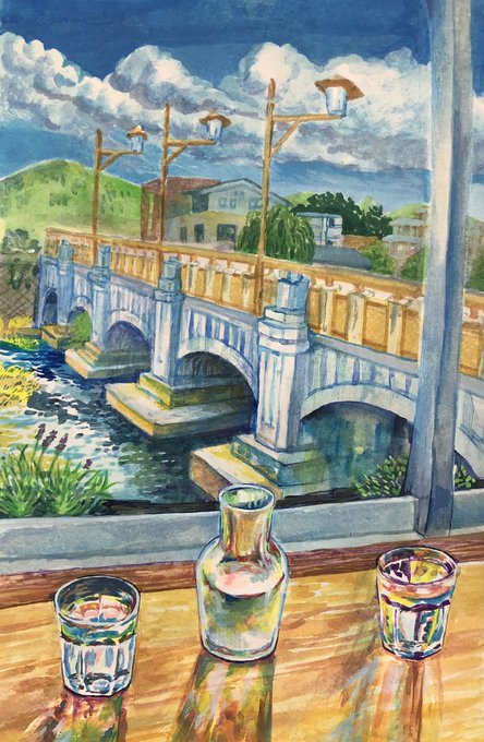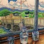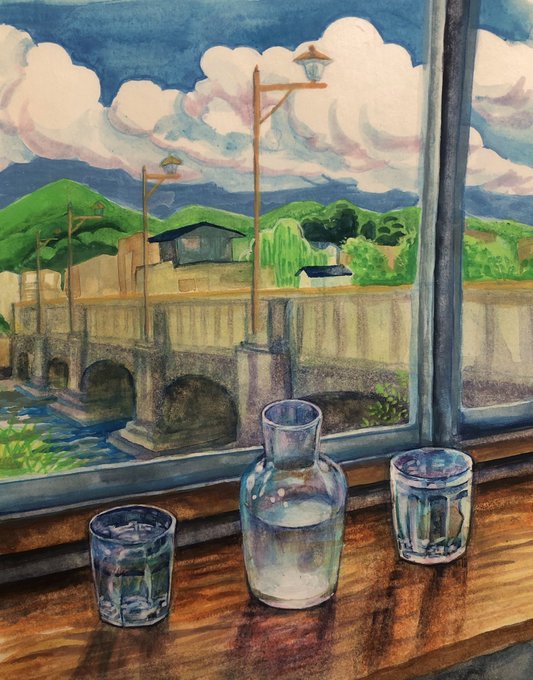 \お水をたくさんのんでたくさん話した日。/ 2022グループ展作品 @galleryDAZZLE 同じ景色を違うテイストで描きたくてでも見事失敗した でもこれはこれですきです笑 #イラスト #illustraion