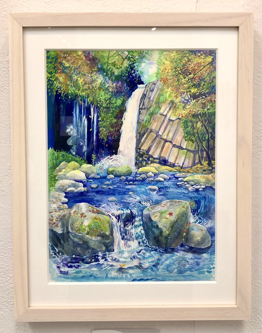 「マイナスイオンに癒されます」と言っていただける滝の絵。 #天城 の #浄蓮の滝 です^ ^ 1/13(金)〜1/18(水) OPAgallery @opagallery 三木美沙個展 “あなたのいる景色” 11:00〜19:00(最終日のみ17時まで) #イラスト #イラストレーション #illustration