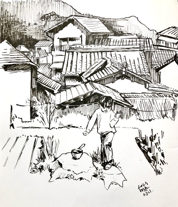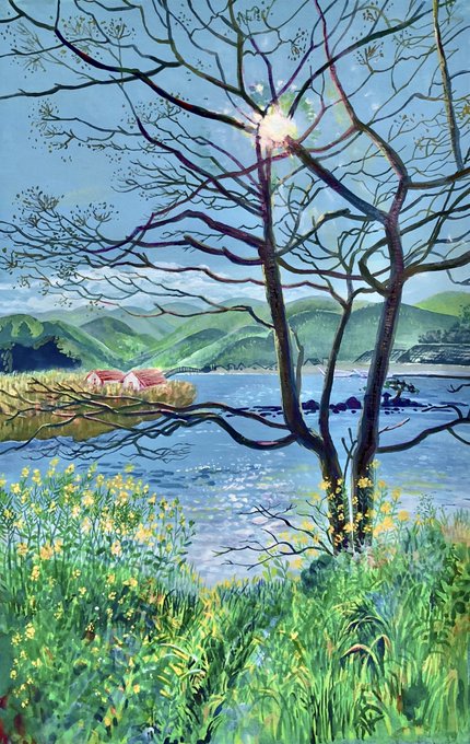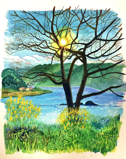 \あなたのいる景色/ 個展作品 1/13〜1/18 #opagallery #南伊豆 #河津 遠中近景で成り立つ景色がすきです。 その場の本人たちそれぞれのドラマ、それを更に遠くから、またそれも大きな流れの中。 そういうフラクタルな視点がすき。 いいじゃんって思う。 #イラスト #illustration
