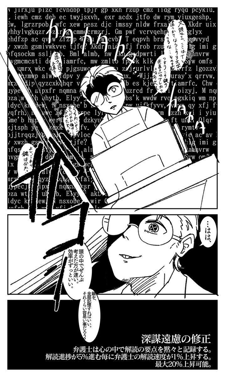 弁護士強化漫画。 前まで解読の要点を地図に記録してたのでそれを脳内処理するって、お前マジでどんどん人間離れしていくなぁっていう。推しよ健やかであれという気持ちを込めた漫画です。 #第五人格 #IdentityV #第五人格イラスト