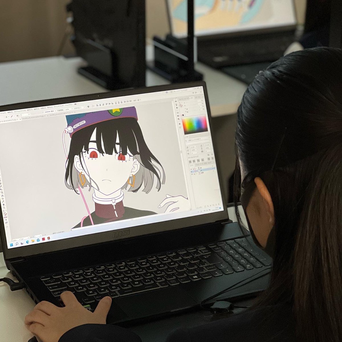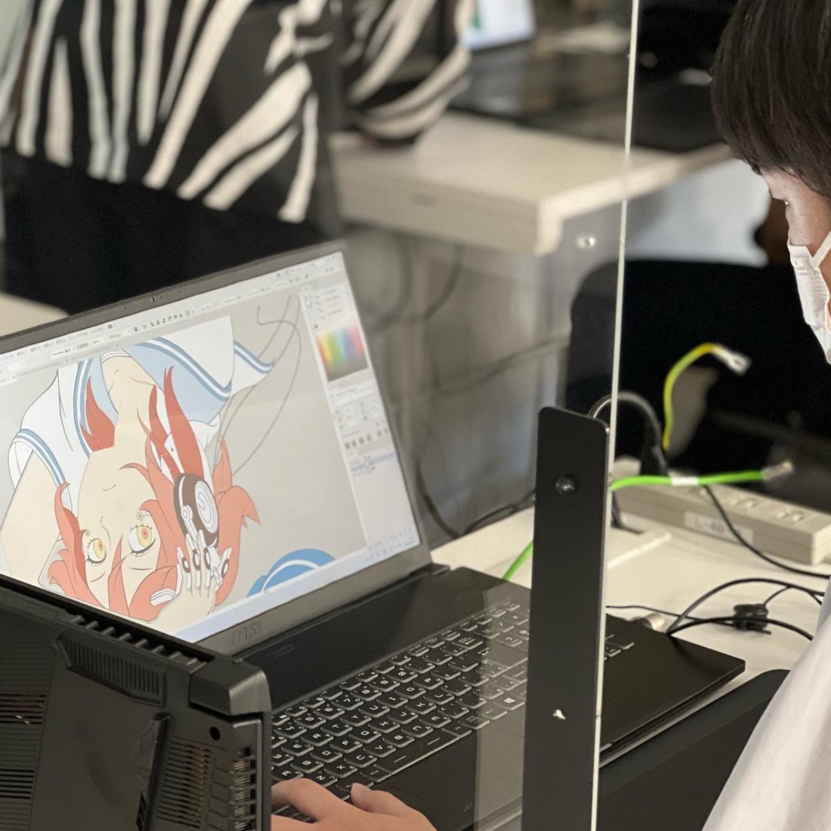 #オープンキャンパス 6月12日(日) 13:00〜16:00 本校パンフレットの表紙も手がける、デザイナー/アーティストのMITSUME先生 @3eyes_takahashi Illustratorでのカッコいい色の塗り方を、先生の線画を使って教わります✨ #トライデント #デジタルイラスト design.trident.ac.jp/event/