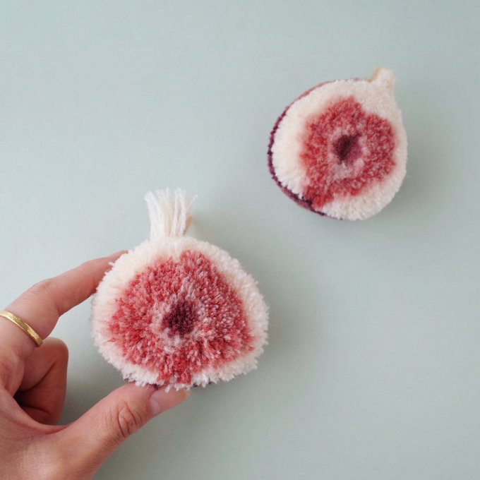無花果研究週間もようやくフィナーレです。 スーパーで買った無花果を毛糸屋さんに持ちこんで、こっそり糸の色選びをしていたのはここだけのひみつ。 #pompom #trikotripompom