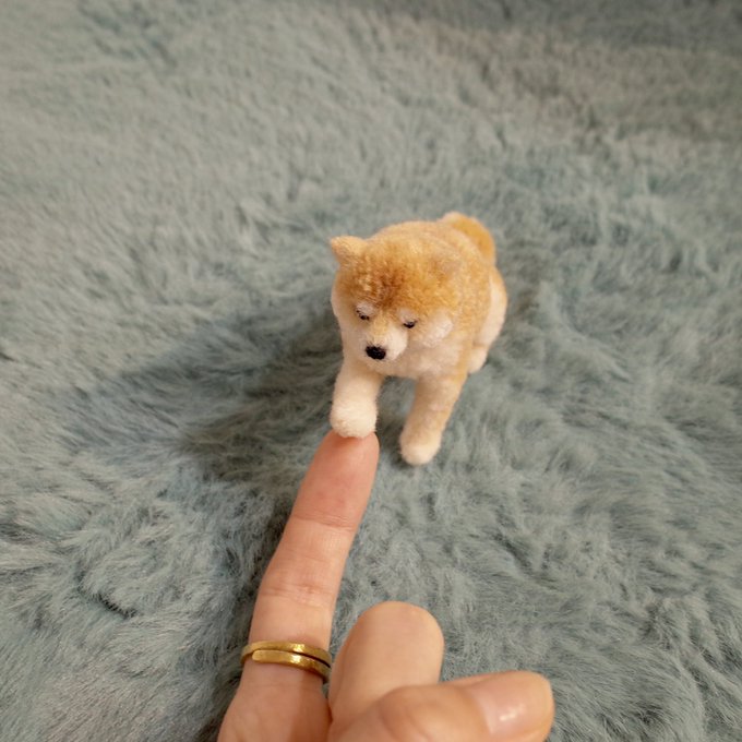 お柴さま。 今までいろいろな動物を作ってきたけれど、ゆいいつ長く一緒に暮らしたことのある動物は柴犬だけ。 ラブリーポイントがおおすぎて、表現しきれません。 #trikotripompom