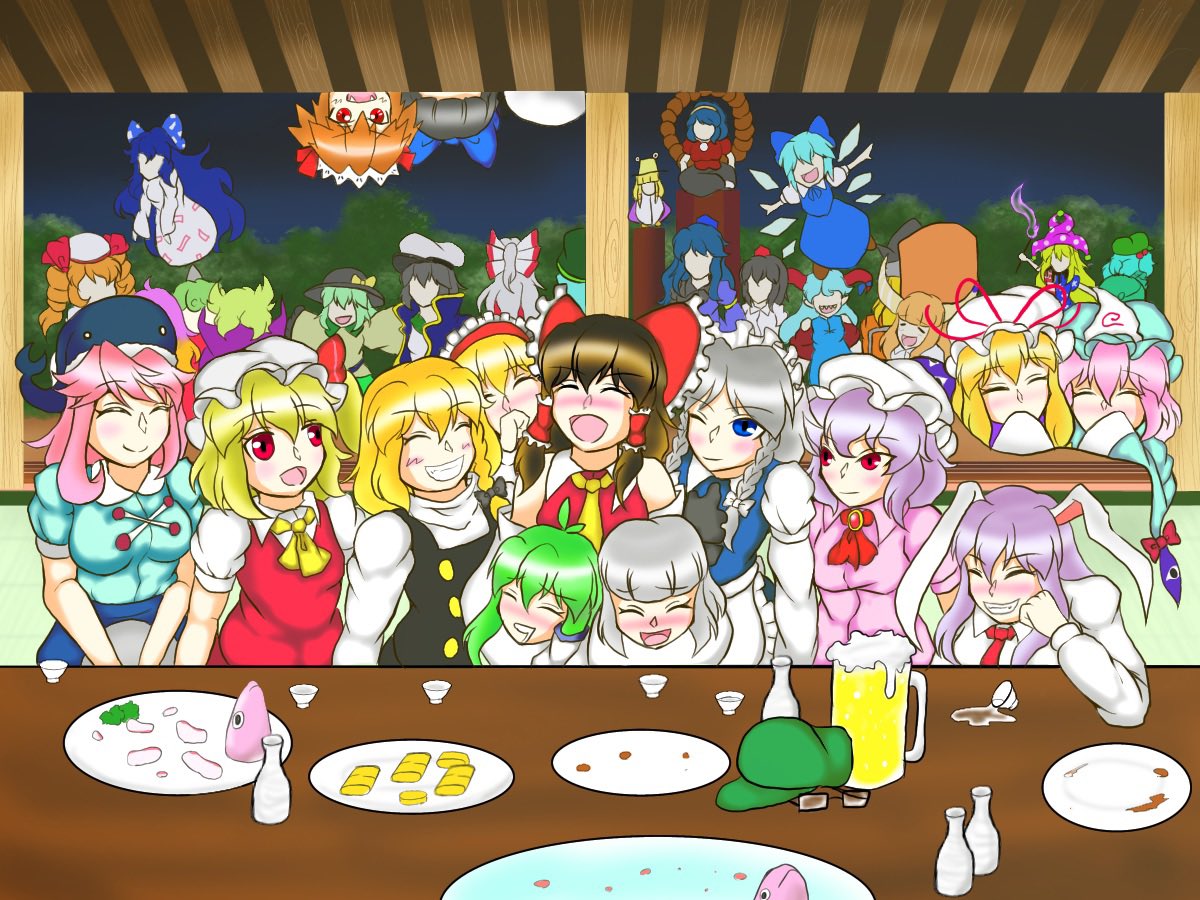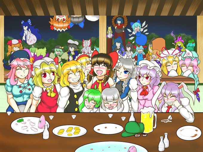 4 10 #東方Project #描き納め2022 毎年恒例描き納めの博麗神社大宴会 in2022 今年もたくさんお世話になりました! 22/12/31 23:11