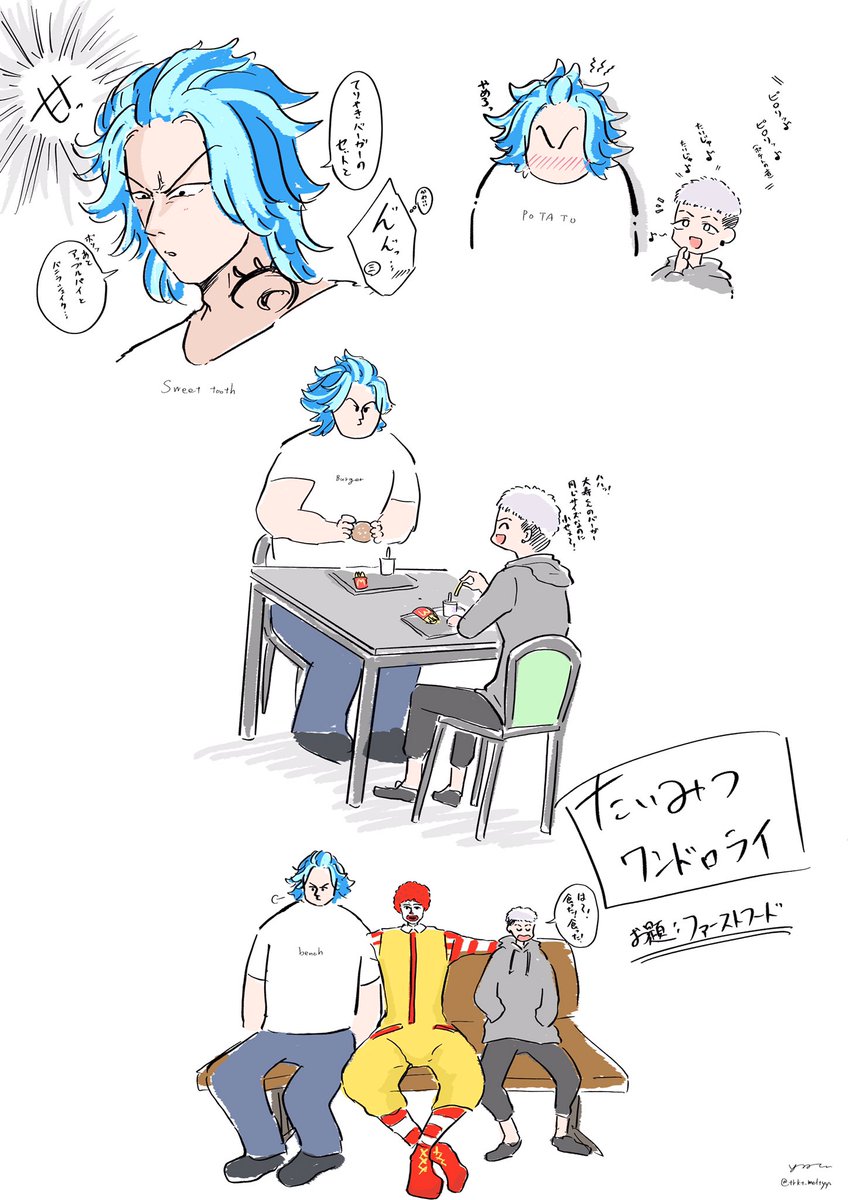 10 55 #たいみつワンドロライ 参加失礼します! 某🍔店に来たたいみつ絵です 22/04/03 23:57