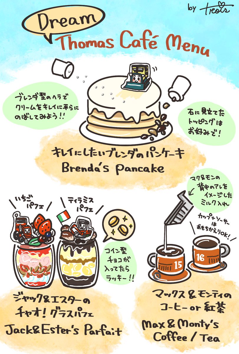 27 79 【らくがきかんしゃ】 妄想コラボカフェメニュー (重機ーズバージョン) ※一部フォロワーさんのツイートから着想を得ました 22/03/27 22:11
