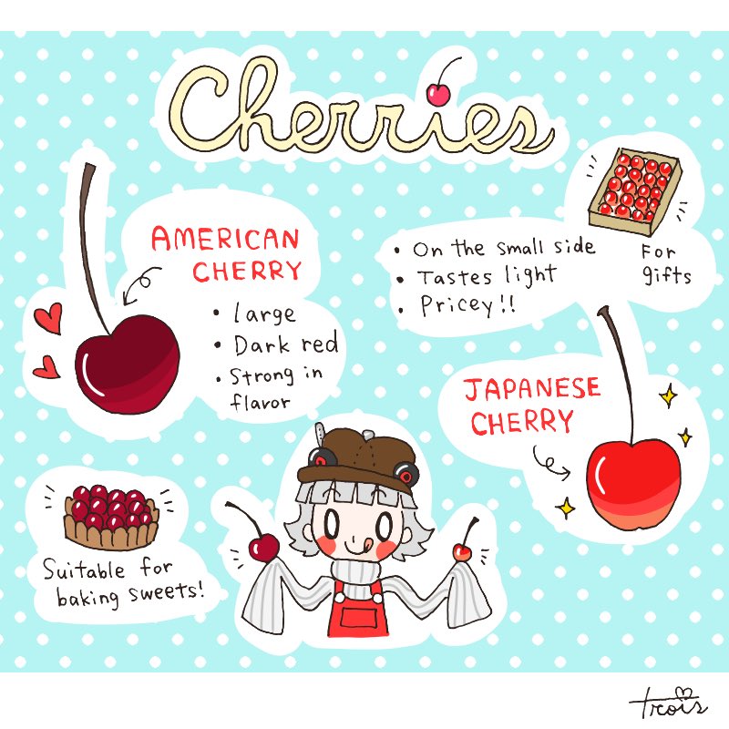 【らくがきかんしゃ】 個人的なさくらんぼの違い🇺🇸🇯🇵🍒 (フォロワーさんへの絵を修正)