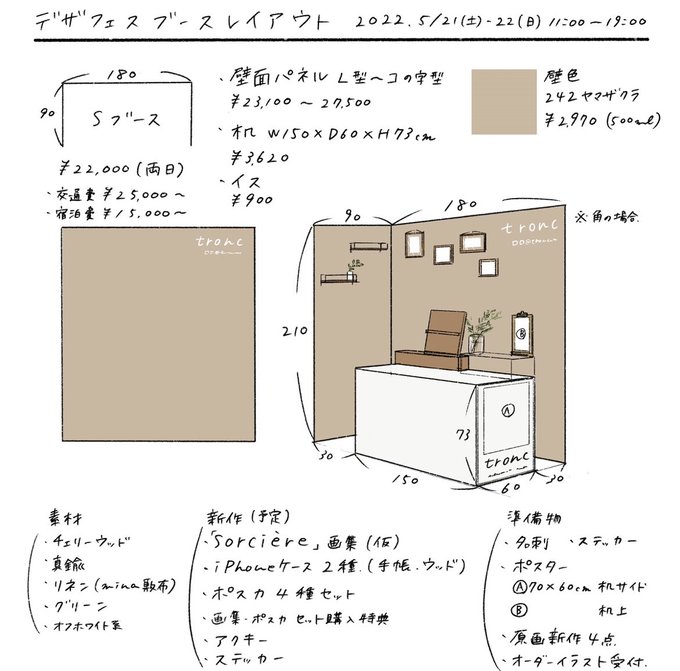 デザフェスブースの出入りが話題になっていたので前回のレイアウト案を載せてみます。 Sブースは費用もサイズも一番コンパクトですが作品を多く置くとかなりギュッとするのでバックヤードもなるべくコンパクトにしています。 --- デザフェスレイアウト計画・諸経費公開 miii.fanbox.cc/posts/3238308?…