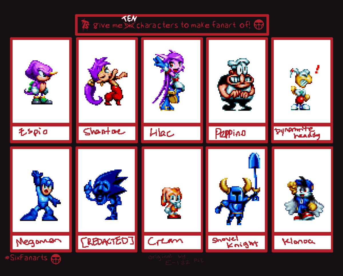 Decided to go with 10 characters this time around! Thank you all for your suggestions!! I hope you enjoy my take for characters in the Sonic Mania Style!! #sixfanart #sixfanartchallenge #pixelart #pixelartist #Pixel